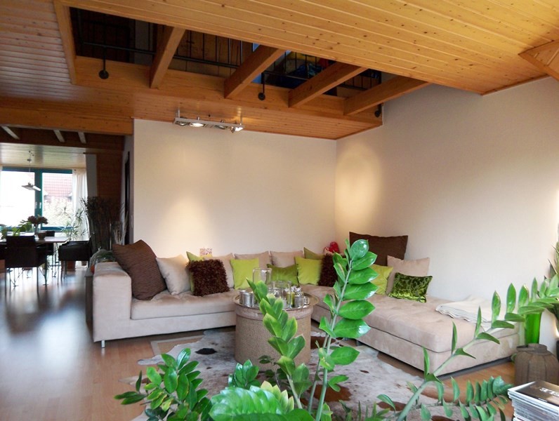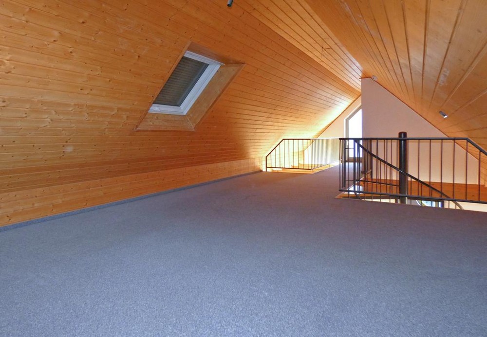 Das 6 – Familienhaus wurde in massiver Bauweise mit ausgefallener Architektur und Holzverkleidung 1995 erstellt. Die helle, sonnige und interessante gut geplante 4 ½ Zimmer-Maisonette, mit Balkon, lädt zum Verweilen ein. Die 4 ½ Maisonette hat eine Wohnfläche von ca. 105 m² und einen Südbalkon sowie einen kleinen Balkon. Aufteilungsbereich: Hereinspaziert, wer Holz liebt, wird sich hier wohlfühlen! Diese interessante Maisonette heißt Sie und Ihre Gäste herzlich willkommen. Vom angenehmen Eingangsbereich, mit Garderobennische, führt es Sie in den schönen, offenen Wohn- und Essbereich mit Zugang auf den Balkon sowie in die separierte Küche mit ihren Einbauten. Diese offene Einbauküche bietet Platz für einen schönen Esszimmerbereich. Die große Einbauküche mit reichlich Platz fürs Kochen. Weiter befinden sich zwei abgeschlossene Schlafzimmer oder Büro-/Gästezimmer. Das angenehme Badezimmer mit Dusche, Badewanne und WC ist geräumig – hier kann der Tag beginnen. Eine schöne Wendeltreppe führt nach oben in den offenen Dachbodenbereich mit kleiner Nische und Zugang auf den kleinen Balkon. Durch die große Fensterfront sind die Räume wie Wohnzimmer und Esszimmer lichtdurchflutete. Vom Wohnzimmer hat man die Möglichkeit auf den Südwestbalkon – hier können Sie den Alltagsstress hinter sich lassen und Abschalten sowie Genießen. Siehe Aufteilungsplan.
